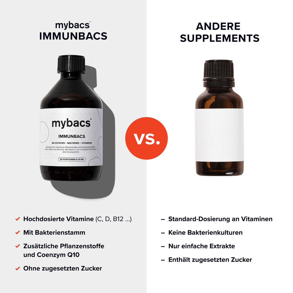 Nutribacs® can be combined with all of our mybacs® products. Our product range is designed to complement each other. However, it is always advisable to consult a doctor or nutritionist when combining different products or food supplements. This way, individual needs can be taken into account and possible interactions can be avoided.